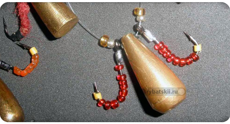 Соорудить такую приманку совсем несложно, если вы уже нашли грузило подходящей формы, два крючка и штук 10—15 бисеринок.