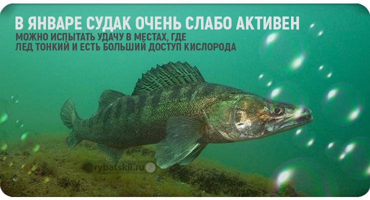 Середина зимы – не лучшее время для рыбалки. Морозы крепчают, лёд становится более толстым, а содержание кислорода в воде снижается. Из-за чего любая рыба становится вялой. Судак не исключение.