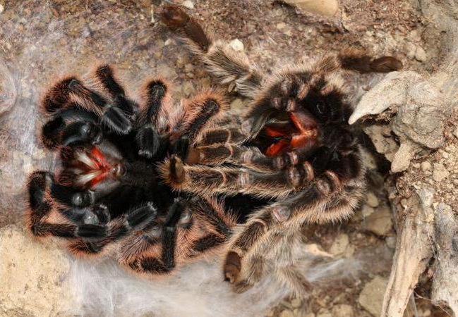 Мексиканский красноколенный паук-птицеед привлекает заводчиков большим размером, яркой окраской, спокойным нравом. Срок жизни составляет около 30 лет.