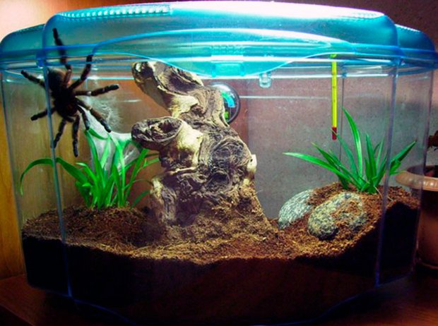 Обычно для содержания пауков используются стеклянные или пластиковые террариумы с хорошей герметизацией. Они могут быть горизонтального и вертикального типа: первые подходят для наземных пауков, а для древесных видов необходим вертикальный тип жилища с эффективной вентиляцией. Поэтому очень важно знать вид вашего питомца, чтобы максимально точно воссоздать для него природные условия.