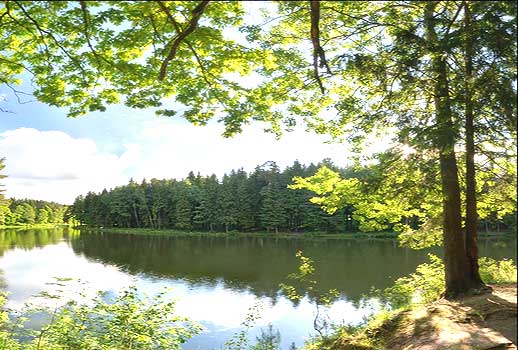 На снимке показан весенний пруд в благоприятную для клева рыбы погоду, но при условии, если изменения показаний атмосферного давления барометром в течение двух-трех последних суток были очень незначительны.