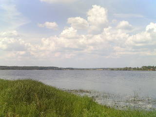 Озеро большое, извилистое, виды у него разные, можно гулять по берегу, любоваться, как облака купаются в воде.