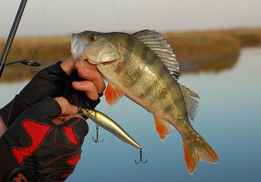 Кроме того в раннее утреннее время успешно половить окуня можно возле островков водной растительности куда он выбирается на охоту. Здесь неплохо работают легкие джиг-головки с белым твистером на офсетном крючке проводимые в полводы.