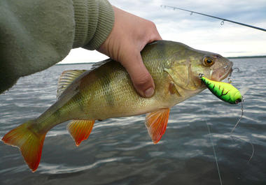 В первую очередь это песчаные «косы» с крутыми «свалами» в глубину. Их и надо облавливать в первую очередь. Днем окунь держится, как правило, у основания таких «свалов», ждет своего час для выхода на мелководье на охоту. Для ловли окуня здесь достаточно легкого джига, а на лодке можно встать на любое удобное расстояние с любой стороны от «косы». «Свалы» желательно облавливать со всех сторон «косы», окунь может стоять с любой стороны. Таких «кос» несколько на западном побережье озера, их легко определить визуально по выдающимся в озеро мысам суши. А во время пика активности окуня, это рано утром или поздно вечером окуня можно успешно ловить и на самой «косе» на небольших глубинах на «вертушки» или окуневые «воблеры». Очень перспективна каменистая отмель на северном берегу, здесь окунь активен всегда. Но из за возможных зацепов надо быть готовым к потере приманок.