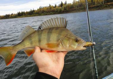 Вообще явно выраженных цветовых предпочтений местный окунь не имеет, летом чуть лучше ловится на темные приманки. Зеленые, коричневые. Хорошо себя зарекомендовали некрупные виброхвосты оснащенные двойниками на разборных грузах.