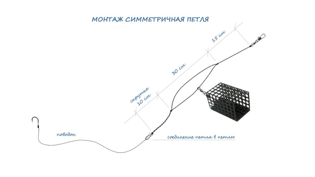 В монтаже ин-лайн, скрутка 10 см, между основной леской и поводком, помогает кормушке не запутываться.