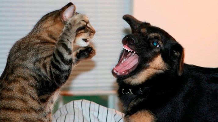 Собака привязывается к хозяину, проявляя безграничную преданность. А вот коты привыкают к месту обитания. Потому они тщательно оберегают свою территорию. При этом коты помечают все уголки ближайшей местности. А кошки могут шипеть на незваного гостя, даже если он в несколько раз превосходит их размерами. Потому часто можно наблюдать, как кот шипит на собаку или другое животное. При этом если это территория, где обычно находится собака, кошка на нее шипеть не станет, а наоборот, может тереться ей об ноги, поддерживая дружественный союз с более сильным зверем.