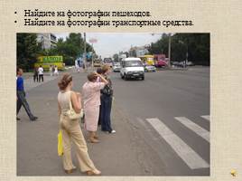 Найдите на фотографии пешеходов. Найдите на фотографии транспортные средства.