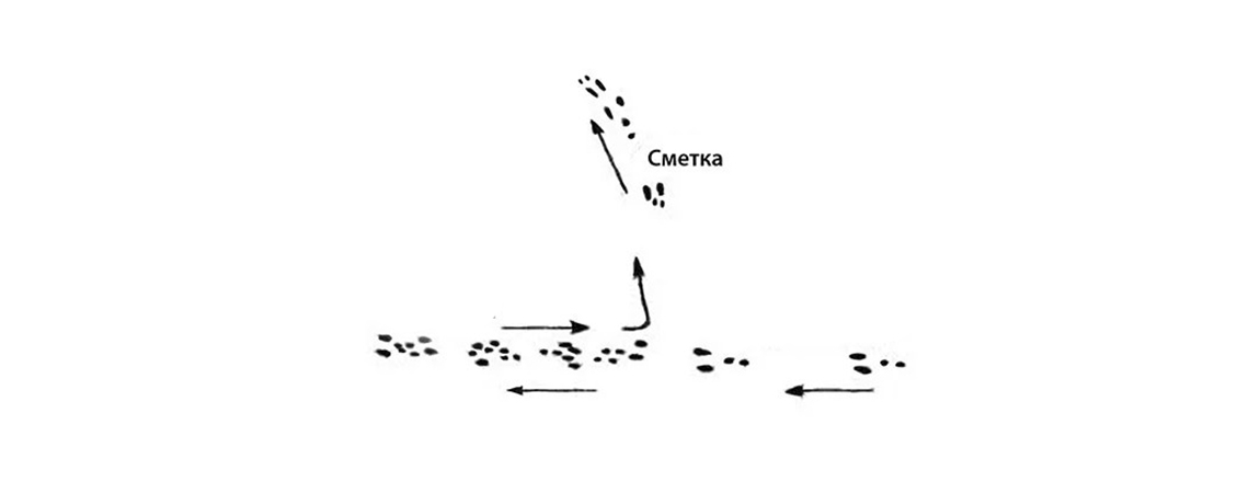 Двойка – это когда заяц, пробежав вперед, возвращается немного назад по своему следу, а затем резко меняет направление, совершая скидку или просто поменяв направление бега.