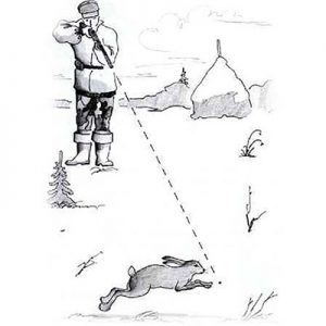 Точка прицела зависит от положения зайца относительно охотника. Убегающего при прицеле закрывают стволом, встречного целят под передние лапы, а бегущего сбоку – прямо перед грудью.