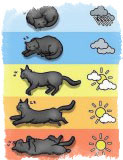 Если кошка пьет больше воды, чем обычно, или дерет стены - к дождю. Трутся эти животные обо что-то к теплой погоде. Кот крепко спит, особенно брюхом кверху, значит, будет тепло. Если ваш питомец разваливает лапы и хвост в стороны, лежа посреди комнаты, это предвещает хорошую погоду. Царапает пол, деревья, дверь или ковер - к ветру или метели. Существует много примет о кошках, которые вы можете узнать из соответствующих статей на нашем сайте.