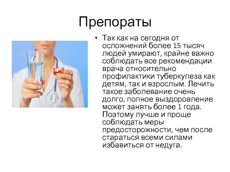 Презентация на тему Презентация на тему Что такое туберкулез и как с ним бороться, предмет презентации: Медицина. Этот материал содержит 10 слайдов. Красочные слайды и илюстрации помогут Вам заинтересовать свою аудиторию. Для просмотра воспользуйтесь проигрывателем, если материал оказался полезным для Вас - поделитесь им с друзьями с помощью социальных кнопок и добавьте наш сайт презентаций ThePresentation.ru в закладки!