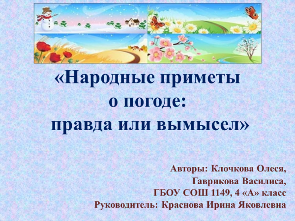 «Народные приметы как средство определения погоды» Научно- исследовательская работа