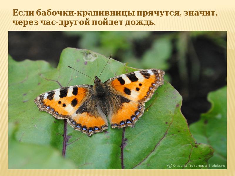 Если бабочки-крапивницы прячутся, значит, через час-другой пойдет дождь.