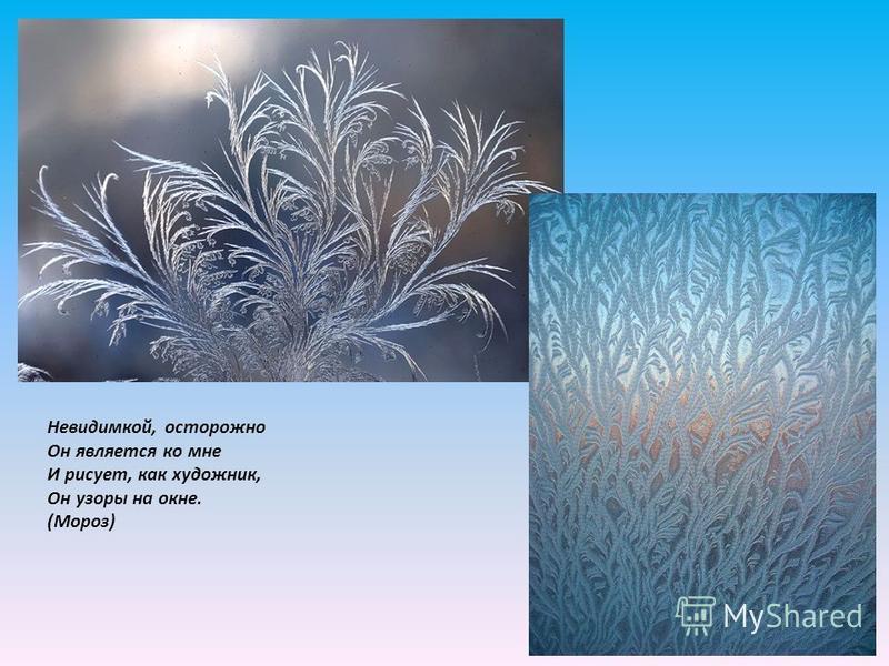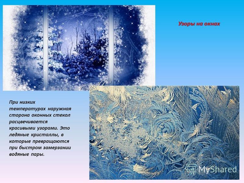 Мороз рисует на окнах узоры. Дни зимой короче, а ночи длиннее.