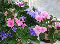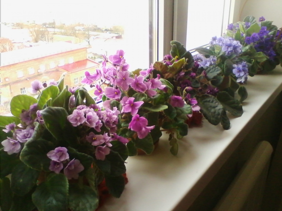 Фиалки на подоконнике
