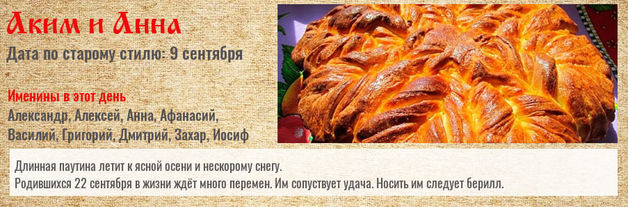 Новолетие, Летопроводец или Первые осенины. Это весьма значимая дата в народном календаре наших предков. В этот день совершалось множество осенних обрядов.