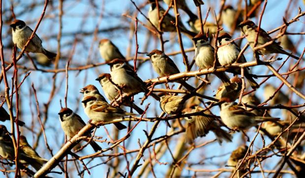 Воробьи сбились в стайки и летают меж деревьев – к засушливым дням;