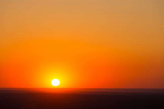 Восход зари на самой линии горизонта предвещает теплый и светлый день.