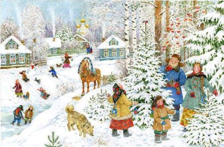 Зимние святки – святочны период представляет собой смешение обычаев и языческих и христианских (воспоминание о Рождестве спасителя). К первым относятся гаданье, ряженые, древние обрядовые игры, ко вторым – славление или хождение детей и молодежи по домам с вертепом и звездой.