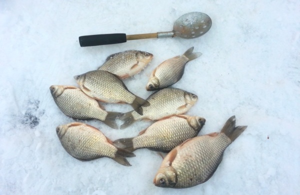 Интересным процессом будет зимняя рыбалка на карася. Чтоб поймать «зимнего» представителя, нужно заранее выбрать место для рыбалки. В холодное время они клюют далеко не на каждом водоёме. Зимняя ловля карася будет удачна по перволёдью. Активный клёв продолжается не более 4 – 5 дней. В поисках пищи, рыба сбивается в косяк и идёт в заливы. В этих местах и стоит пытать счастья в поимке этой рыбы. Потом идёт временное затишье. Ловля карася зимой будет удачной, если правильно подобрать приманку.