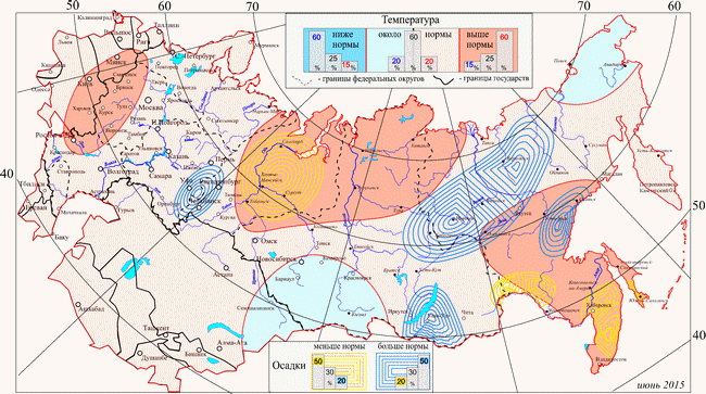 25.02.2015 (Предварительный прогноз) Июнь, поначалу, будет умеренно-теплым с преобладнием переменной облачности, в середине июня заметно потеплеет - преобладание солнечной, можно сказать, даже жаркой погоды, локальные грозы, июнь в целом можно будет оценить как умеренно-теплый, а осадки в этом месяце не дотянут до нормы.