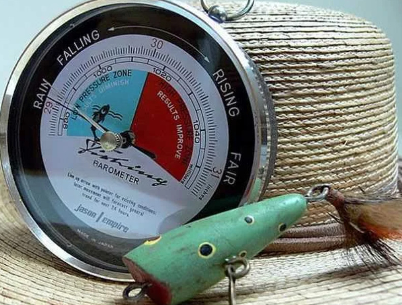 Барометр – крайне полезный прибор для любого рыболова. Чаще всего хороший клев наблюдается при давлении около 750 миллиметров ртутного столба, однако возможна активность рыбы и при стабильно повышенных либо пониженных показателях.