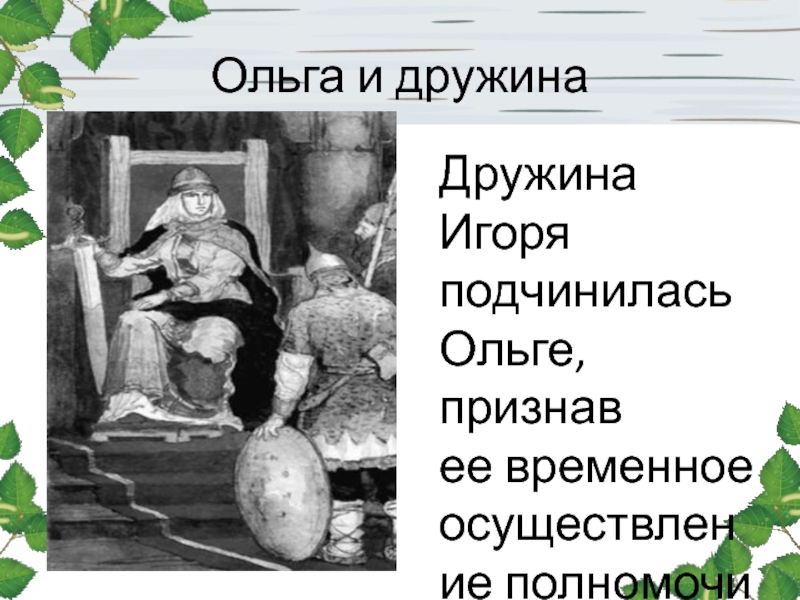 Дружина Игоря подчинилась Ольге, признав ее временное осуществление полномочий.