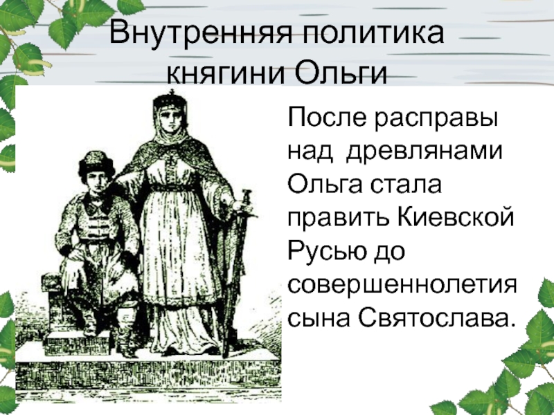 После расправы над древлянами Ольга стала править Киевской Русью до совершеннолетия сына Святослава.