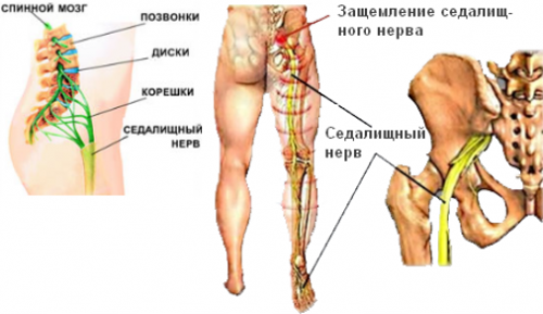 У большинства больных (80%) патология проявляется болями в пояснице, которую определяют как . В 15–20% случаев боль распространяется не только в спине, но и в проекции седалищного нерва (). Только у небольшого числа больных (5%) боль впервые возникает изолированно - в области, иннервируемой седалищным нервом. Она может распространяться в седалищной области, по тыльной поверхности бедра, наружной поверхности голени, гораздо реже - по ее задней поверхности.