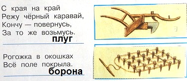 1. Отгадай загадки о мужском весеннем труде и его старинных орудиях. Запиши отгадки.
