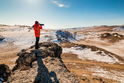 Зимой Байкал покрывается толстым и абсолютно прозрачным слоем льда. На нём встречаются причудливые и красивые наросты. Будьте осторожны на льду, лучше ходите по озеру с проводником. На ледяном покрывале могут быть малозаметные трещины и полыньи, куда может провалиться человек. Морозы на Байкале не кажутся суровыми, если смотреть только на температуру — до −15°C в январе и феврале. Но ощущение холода многократно усиливается во время метели. Также зимой на озере бывают туманы.