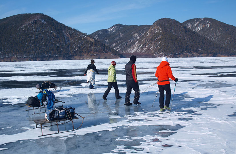 Ледовый сезон на Байкале начинается примерно 15 февраля и длится до начала апреля. В это время озеро скованно крепким льдом и по нему можно совершать путешествия на джипах, гулять, кататься на коньках, беговых лыжах, снегоходах. Погода в это время стоит достаточно теплая и солнечная.