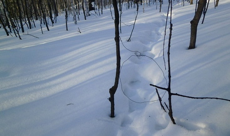 Поэтому, желательно проводить установку ловчих петель на лыжах. К месту остановки подходить сбоку и тропу не пересекать, при установке ловушек вдоль опушки, подходить к ним лучше со стороны леса. У тропы ваших следов быть не должно, на ней возможно. Просто заяц может остановиться, заинтересовавшись вашими следами, а нужно чтобы он попал в петлю на скорости.