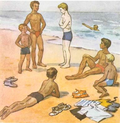 Мы предпол:гали выехать рано, но задержались. Вдоль дороги, кроме кустарниковой пор. сли, не было видно никакой другой р :стительности. В полдень мы устроились на отдых у озера. Заг. релые ребятишки плавали на самой его середине на пл. ту. Солнце п. кло так, что к песку нельзя было прик:снуться. В лучах солнца озеро сверкало, как зеркало.