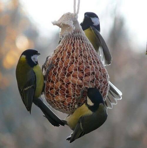 Нужно помнить, что в особо морозные дни все мягкие и вареные корма быстро замерзают. Поэтому если птицы не приучены являться к кормушке в строго определенное время (или у вас нет возможности кормить птиц по режиму), лучше лепить для них небольшие комочки из тертого сала и/или жира и семечек, подвешивая их в сетке на деревья - это угощение они смогут съесть в любом случае.