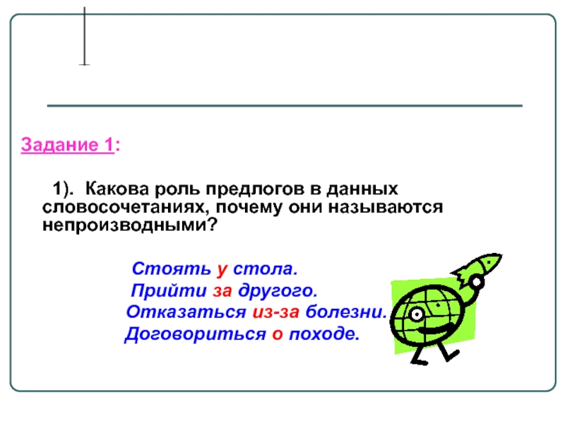 1). Какова роль предлогов в данных словосочетаниях, почему они называются непроизводными?