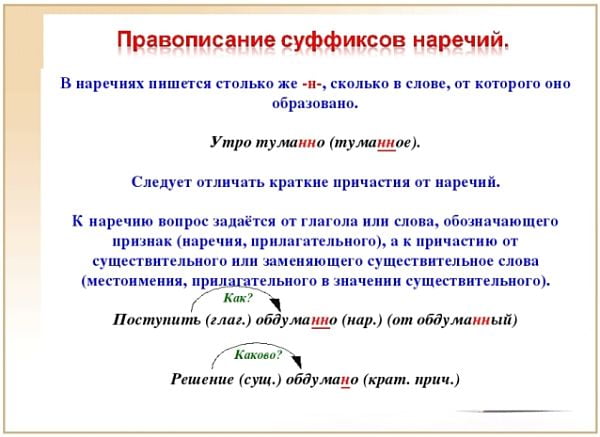 В наречиях пишется столько же Н, сколько и в словах, от которых они были образованы: