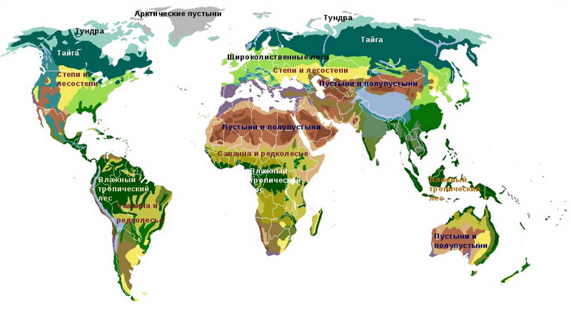 Природные зоны мира отличаются не только климатом. Различия имеются и в растительном, и в животном мире. Каждая природная зона характеризуется уникальными представителями флоры и фауны.