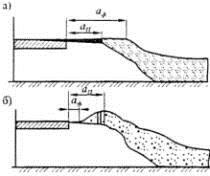 Рис. 4.14. Параметры и состояние обочин зимой: а - при тщательной очистке снега; б - при образовании вала снега на участках ограждений, сигнальных столбиков; аП- проектная ширина обочины;аф- фактическая ширина обочины