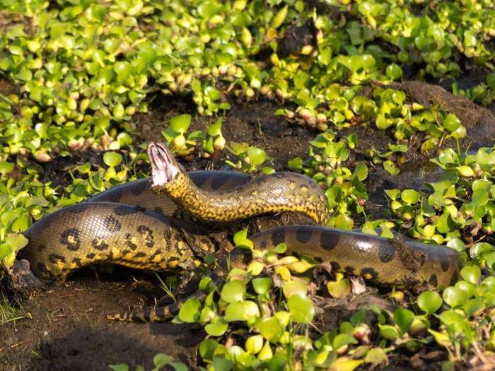 Все же основу рациона анаконды составляют более мелкие живые существа, а именно: