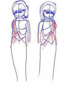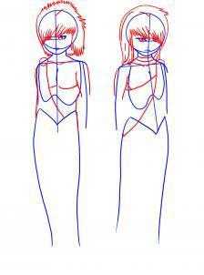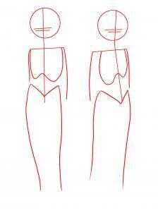 Сначала рисуем очертания двух фигур (одна будет мужская, другая женская):