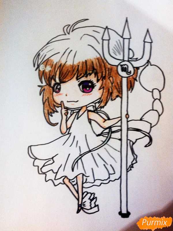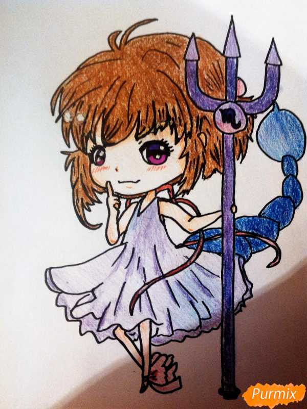 Всем привет, в этом уроке я покажу, как нарисовать знак зодиака скорпион в стиле чиби девочки карандашами и фломастерами, всем удачи :)