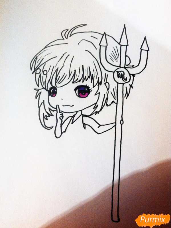 Рисуем руки, детализируем лицо, так-же рисуем трезубец.