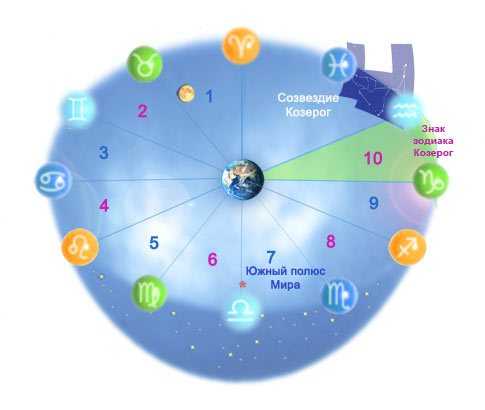 Свое название этот знак получил от созвездия Козерог (рис. 4), располагавшегося в начале нашей эры полностью в этом сегменте. В наше время, вследствие прецессии* – циклического изменения направления земной оси относительно звезд, Солнце находится одновременно и в созвездии Козерога и в знаке Козерога лишь 19 и 20 января (рис. 2):