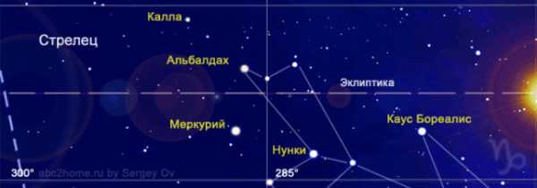 Справа в знак входит Солнце, в область знака Козерога попадает часть наиболее ярких звезд созвездия Стрелец, а так же единственная планета Меркурий. Наиболее влиятельная зимой 2015-2016 года планета, Сатурн, будет находиться в знаке Стрельца до января 2018 года, создавая тем самым предпосылки (по Птолемею) для того чтоб зимы были холодными, а "зимние дети" (дети рожденные зимой) в своем большинстве были "Стрельцами".