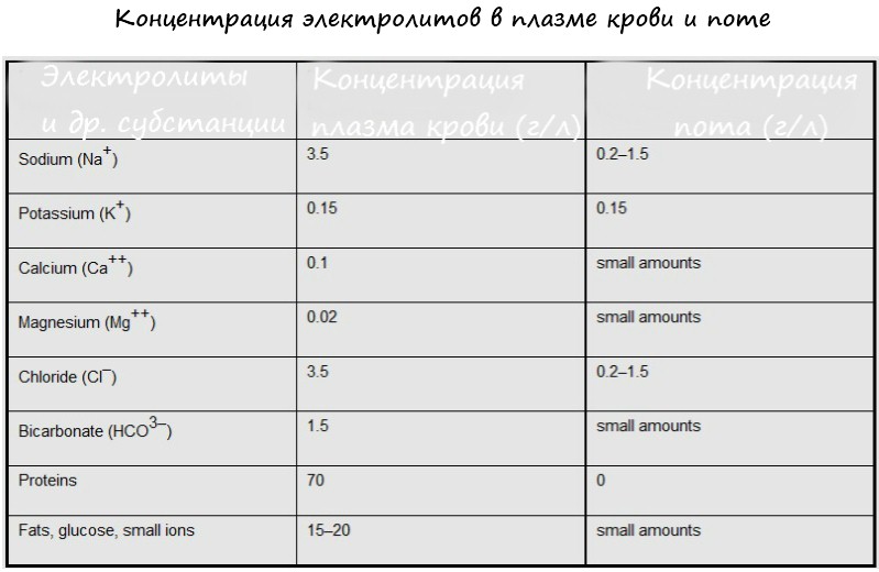 Как только тело начинает терять жидкости больше, чем это положено, человек испытывает тяжелые симптомы тепловой болезни — общий дискомфорт, потеря координации и выносливости, слабость, плохая концентрация, раздражительность, боли в мышцах, судороги, головокружение, тошнота и спутанность сознания. Все это в конечном итоге увеличивает вероятность не закончить как положено тренировку, а “загреметь” с травмой. Вы можете легко потерять (через пот) около 1 литра воды в течение часа напряженной работы в зале в жаркую погоду. Также с потом выводятся соли и полезные минералы (полный список которых приведен в таблице ниже), что приводит к значительному снижению интенсивности протекания тренировки.