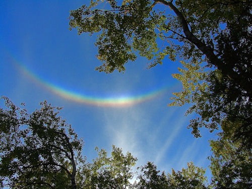Огненная радуга - это редкое оптическое атмосферное явление. Огненная радуга появляется, когда солнечный свет проходит сквозь перистые облака под углом 58 градусов над горизонтом. Ещё одним необходимым условием для появления огненной радуги являются шестиугольные кристаллы льда, имеющие форму листа и их грани должны быть параллельными земле. Солнечные лучи, проходя сквозь вертикальные грани ледяного кристалла, преломляются и зажигают огненную радугу или округло - горизонтальную дугу, так в науке называется огненная радуга.