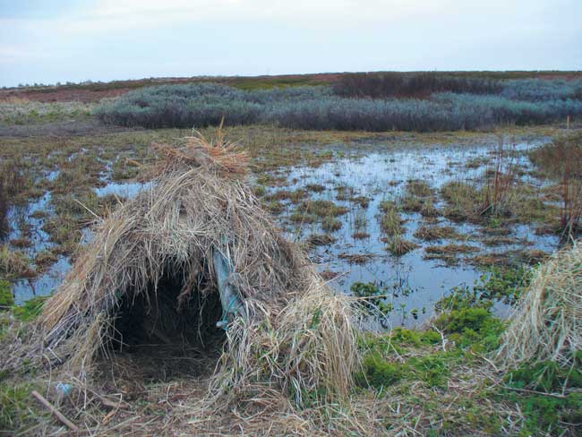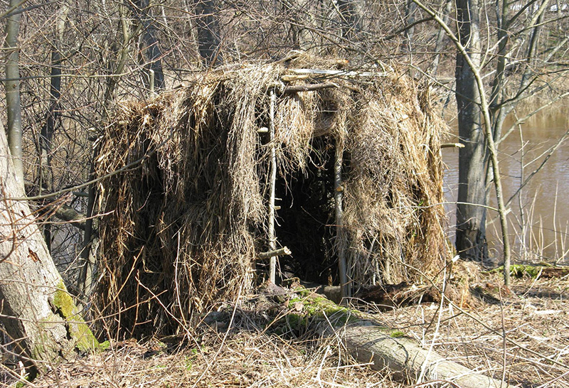 При использовании подсадной утки охотиться будет комфортней и результативней из шалаша. Главные требования к нему: простота, надежность, незаметность и вместительность. Обычно его каркас делают из сухих веток, а роль крыши выполняет трава. Некоторые охотники берут с собою специальную ткань, которой обтягивают каркас сооружения и только потом покрывают травой охотничью «крепость».