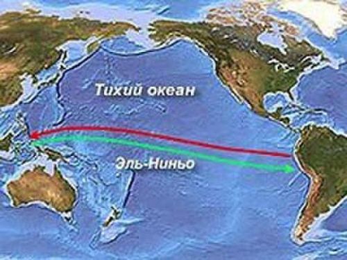 Однако всё меняется с наступлением Эль-Ниньо, появлением продольного экваториального течения с запада на восток в южном полушарии и с востока на запад в северном полушарии. В это время пассаты ослабевают, тропический тепловой бассейн растекается, и на огромной площади Тихого океана происходит повышение температуры воды. В районе Перу холодное течение сменяется движущейся с запада к берегу Перу теплой водной массой, апвеллинг (подъём глубинных вод на поверхность) ослабевает, пропадает планктон и гибнет без питания рыба, а западные ветры приносят в пустыни влажные воздушные массы, ливни, вызывающие даже наводнения.